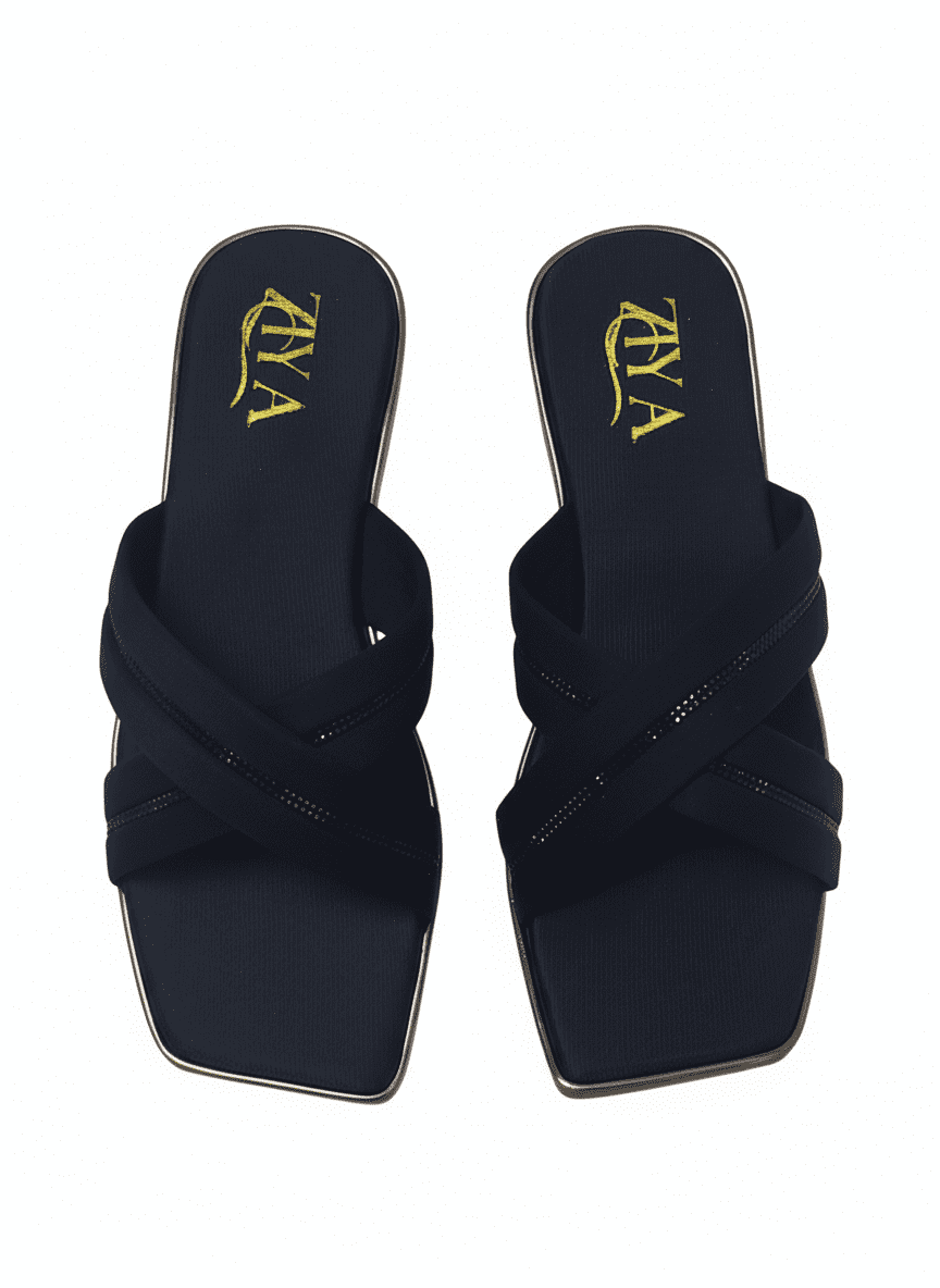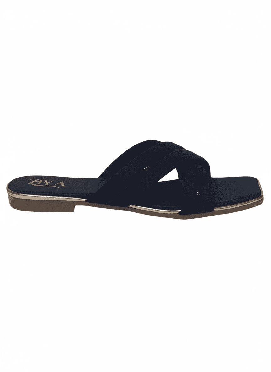 Embrace sleek sophistication with ZIYA Black Cross-Strap Square Toe Flats. These sandals feature a classic black finish with stylish crisscross straps for a minimal, contemporary look. The chic square toe and cushioned footbed ensure lasting comfort, while the subtle glossy accents add a refined touch. Designed for easy slip-on wear, they are perfect for office attire, evening outings, or casual daywear.