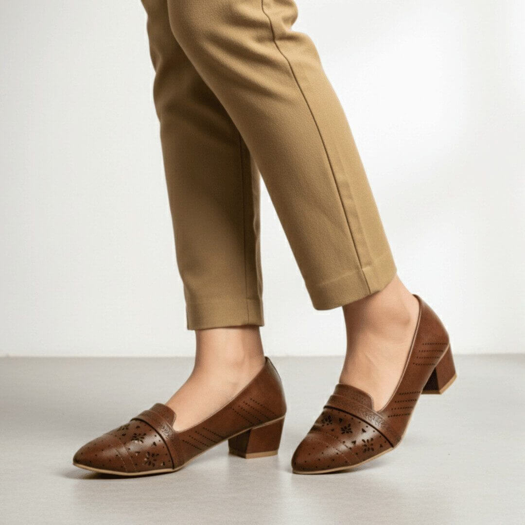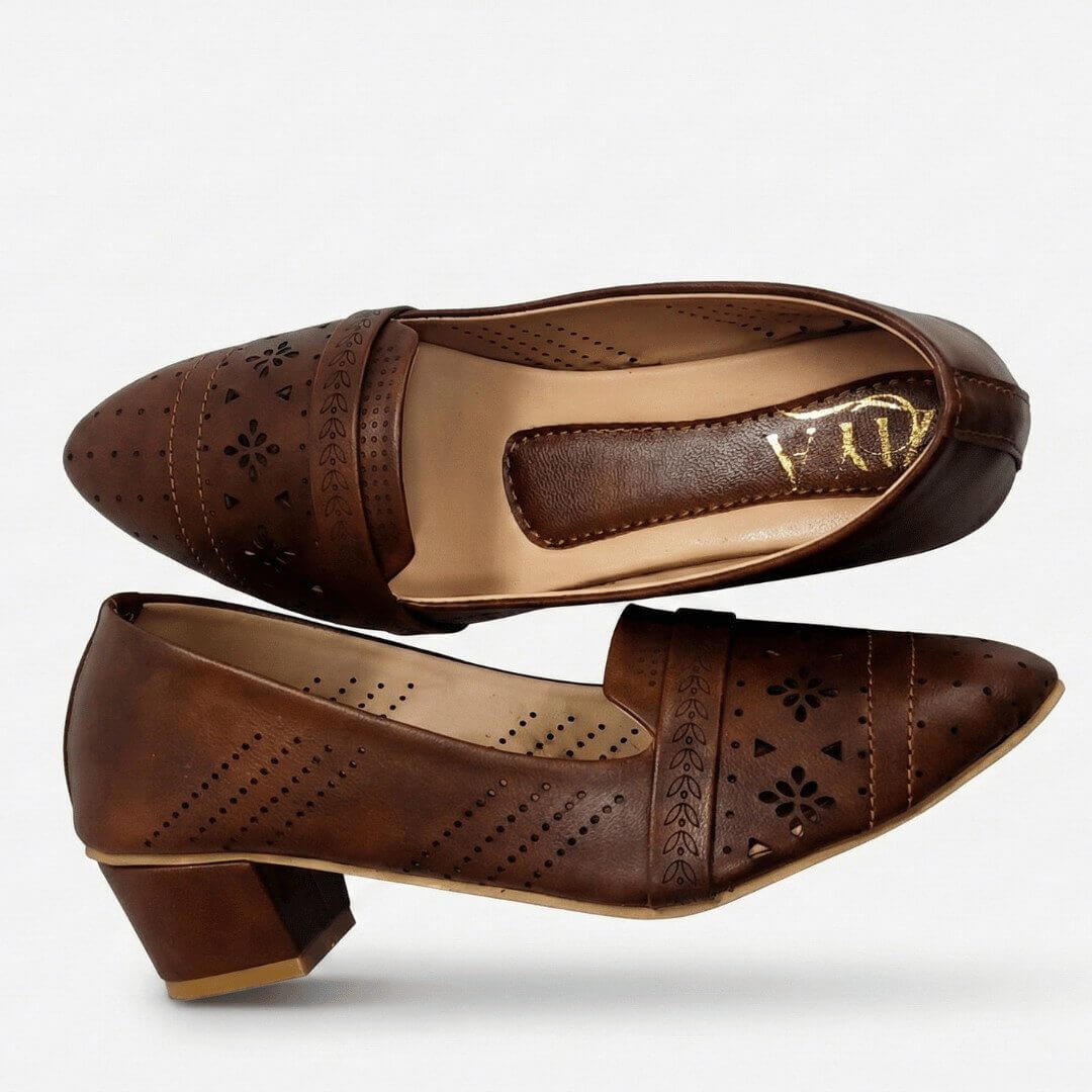 ZIYA Brown Perforated Work Heels