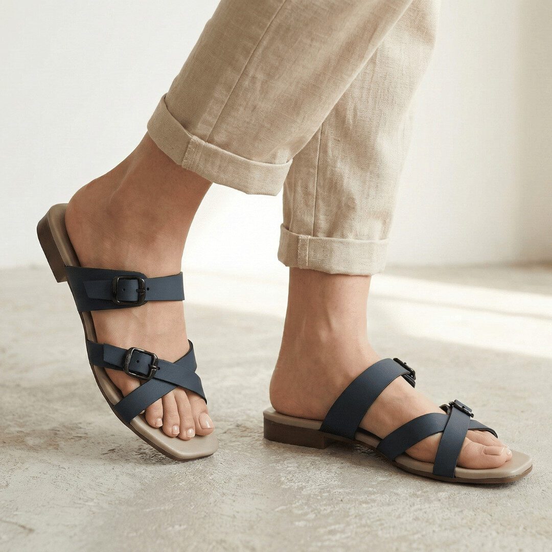 Step into effortless everyday style with ZIYA Navy Dual Buckle Comfort Flats, featuring sleek criss-cross straps and adjustable buckles for a secure, custom fit. The softly cushioned footbed and low-profile sole keep you comfortable from morning errands to relaxed evenings, while the minimalist design pairs seamlessly with jeans, dresses, and casual workwear.​