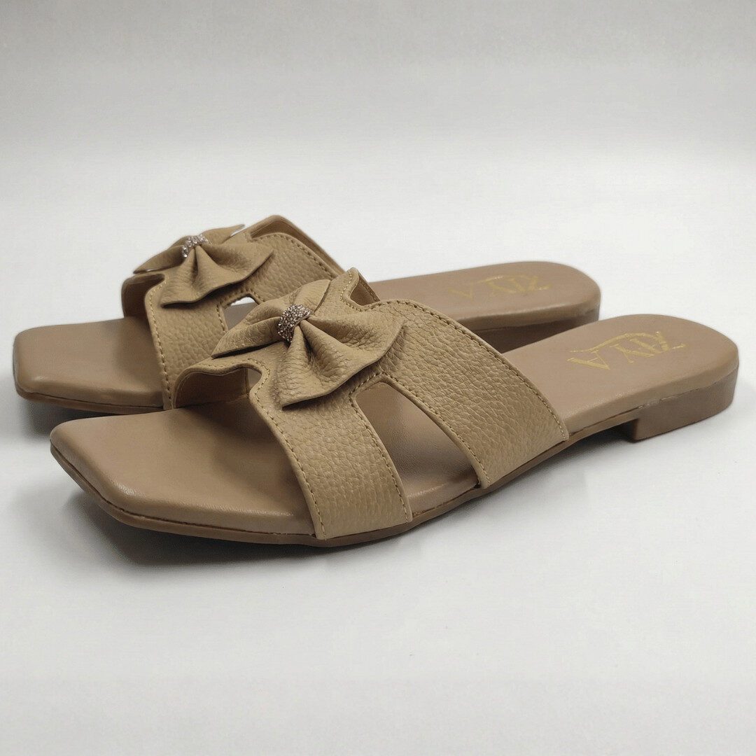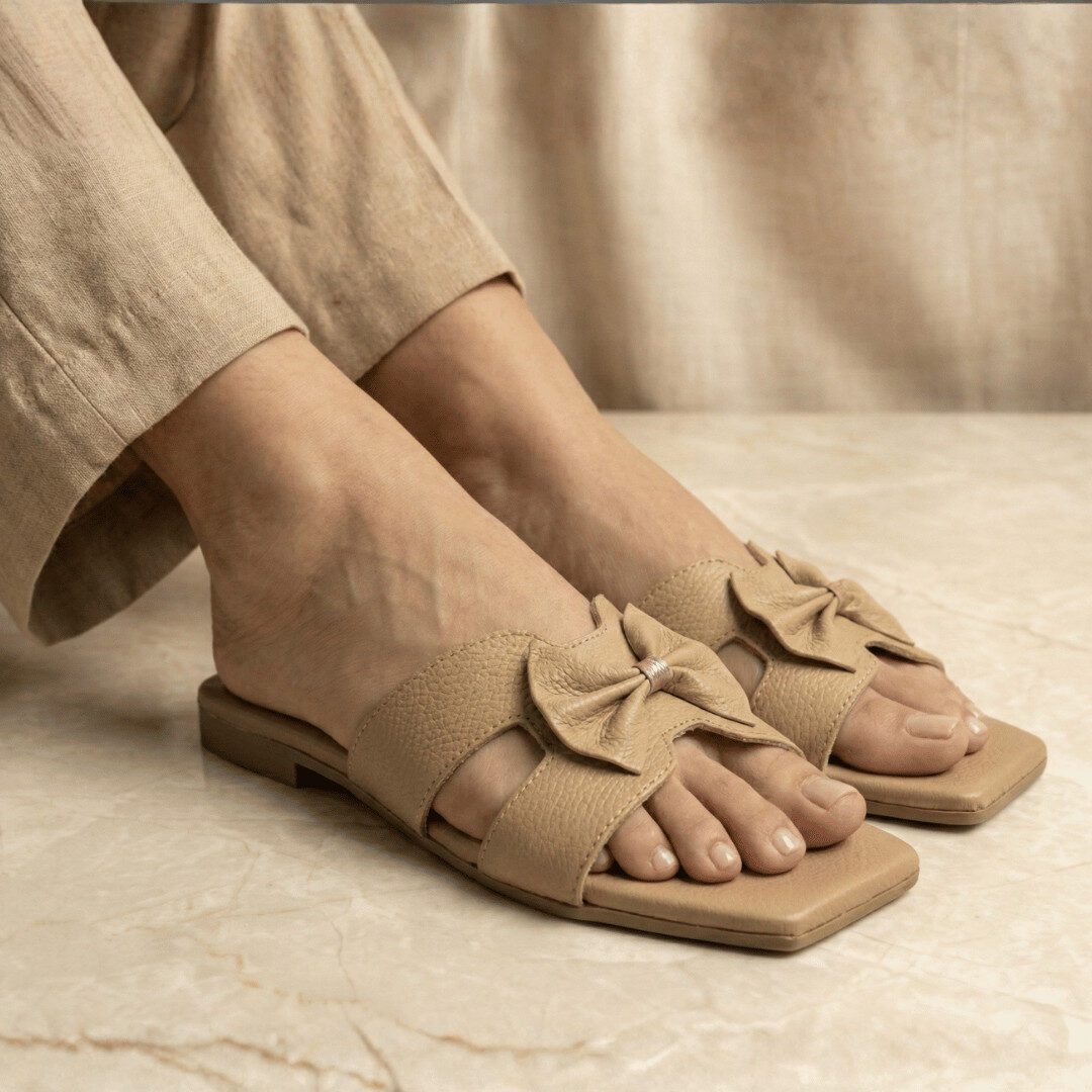 Step into understated elegance with ZIYA Nude Bow Charm Flats, designed in a soft nude tone with a sculpted square toe for a clean, modern silhouette. The wide textured strap is topped with a delicate bow and subtle shimmer detail, while the cushioned footbed keeps every step comfortable from brunch dates to casual evenings.​